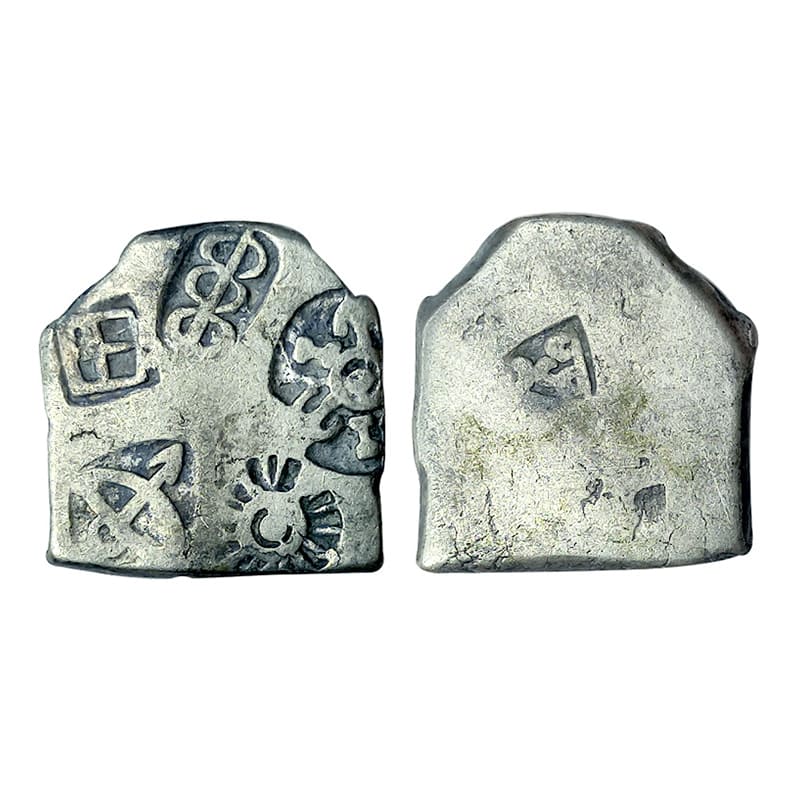 Punch-marked Coins, Vanga Janapada (c. 300-250 BC), Billon, 2.46 g, Heavy Series, three symbols type...