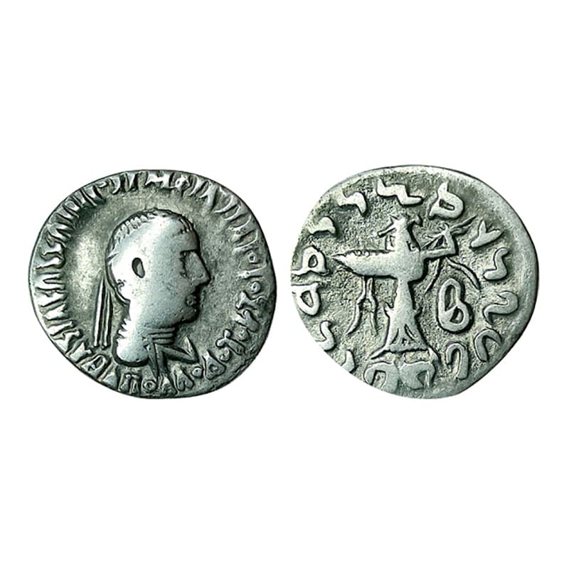 Indo-Greeks, Hermaeus with his wife Calliope (c. 40 BC), Drachm, Silver, 1.83 g, obv. didemed busts ...