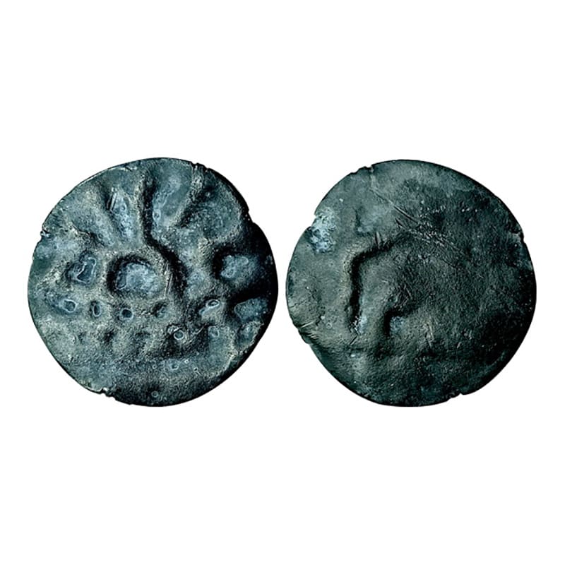 Chutus of Banavasi, Chutukulananda, Lead, 5.02 g, obv. Six-arched hill in centre and around Brahmi l...