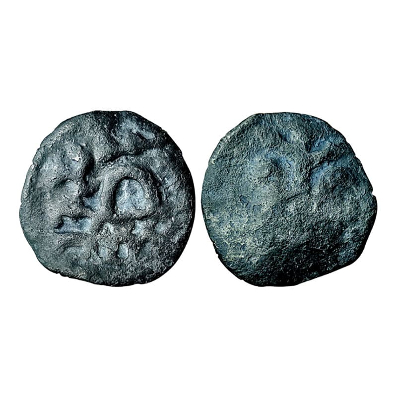 Satavahanas, Punch-marked type, probably Kotalingla type, Lead, 5.46 g, two punches on obverse havin...