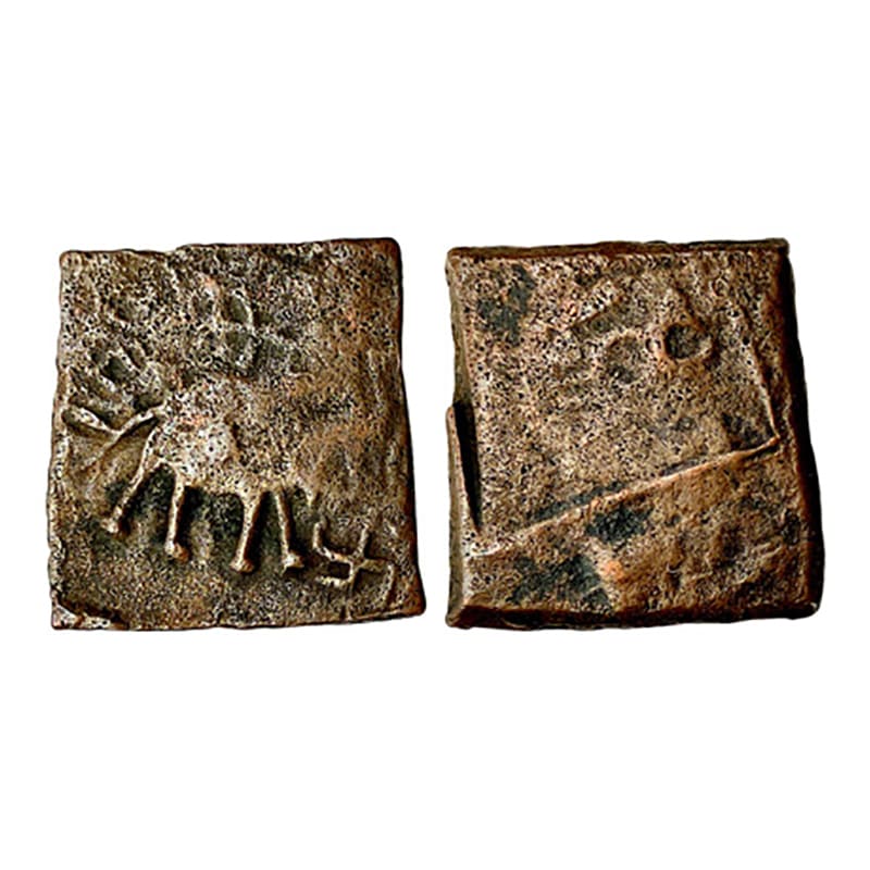 Mahasenapatis of Maharashtra (c. 100 BC), Swastika Coin, Copper, 2.72 g, an elephant standing to rig...