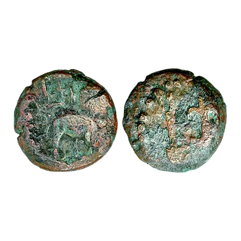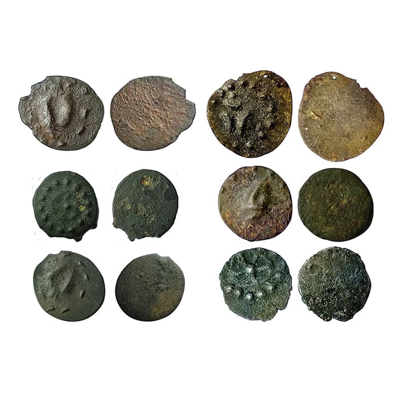 Banavasis (c. 100 BC), Bell metal Copper (6), 0.24, 0.24, 0.23, 0.20, .15 and 0.14 g, Single symbol ...